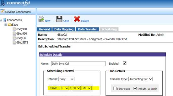 System Administrator updated the scheduled data transfer time to 8pm, but the data transfer continues to run at the old scheduled time.