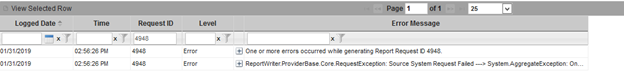 The error is displayed in Admin/View Data errors after the Report has failed to process. (Note: Your error message may not be exactly like the one shown)