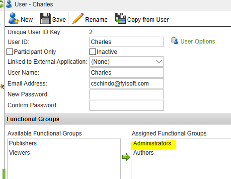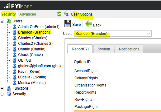 The next step is to make sure that the users to be included in the component group security do not have “Edit” Rights assigned in the User Options.