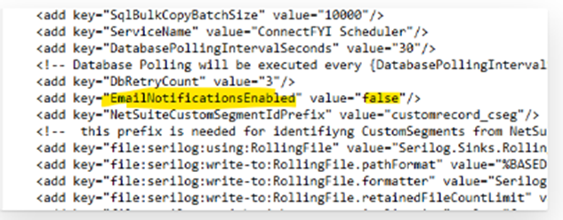 Make sure the Email Notification Enabled value is set to “true” in the ConnectFYI.Scheduler.exe config file.